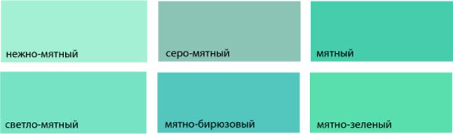 Палитра основных оттенков мятного цвета: